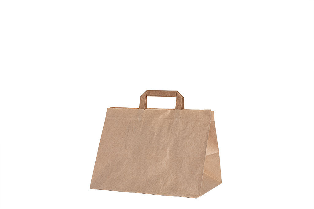 Papier Tragetasche tief, neutral braun, reißfest, 320 x 220 x 240 mm