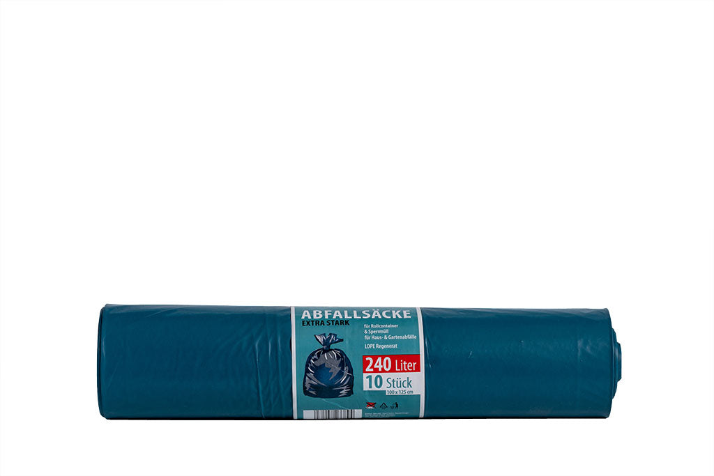 Die Abfallsäcke sind extrem stark und für Rollcontainer & Sperrmüll geeignet. Das Fassungsvermögen der Müllsäcke liegt bei 240 Litern und eignet sich ebenfalls für Haus und Gartenabfälle. Unsere Abfallsäcke haben die Maße von 100 x 125 cm.