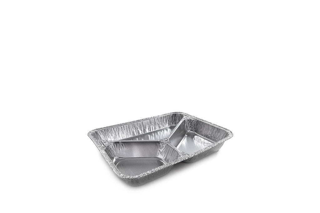 Aluschale, Alu-Menüschale, 3-geteilt, abstehender gerollter Rand, 220+165+375 ml, 227 x 177 x 30 mm, Typ R881G