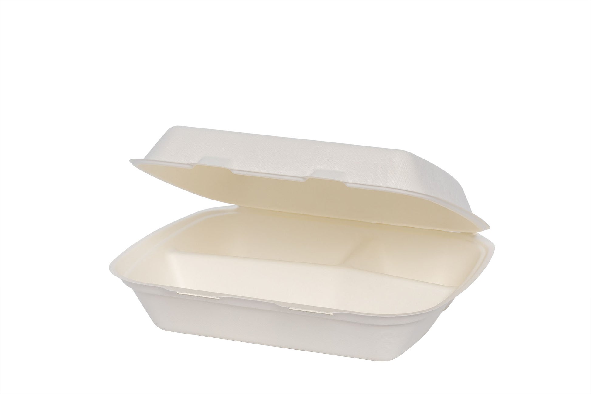 Bio Menü-Box, 3-geteilt, aus Bagasse, weiß, 241 x 203 x 69 mm