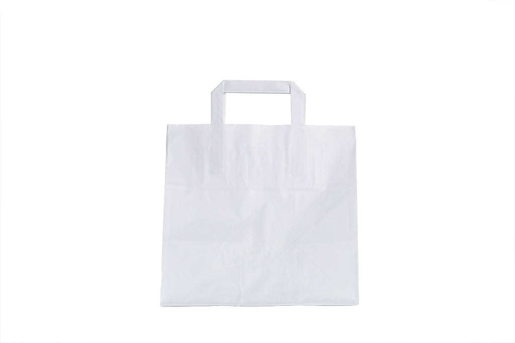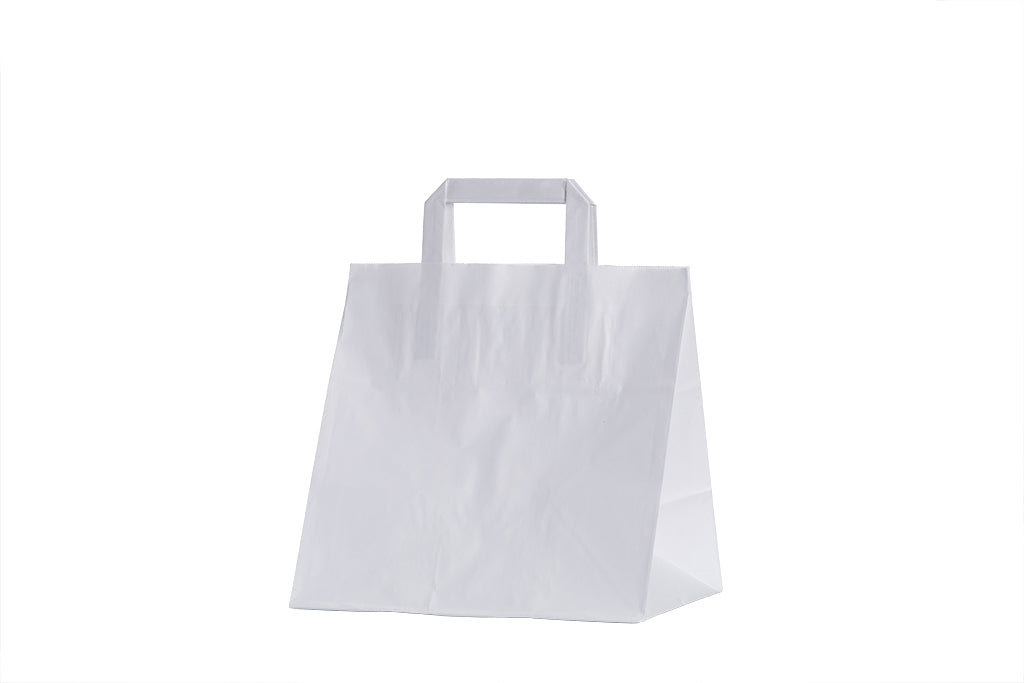 Diese Papiertragetasche im Querformat ist ideal für Bäckereien und Konditoreien. Mit 17cm bietet sie einen sehr breiten Boden. Ideal für Brötchen oder leckeren Kuchen. Die Tüte kommt in einem neutralen Weiß und lässt sich individuell gestalten. Bei Vorbestellungen der Kunden lässt sich die Tüte z.B. schnell und problemlos mit dem Kundennamen beschriften. Bleistift und Kugelschreiber halten perfekt. Auch lässt sich die weiße Tüte individuell gestalten - für den Geburtstag oder andere persönliche Anlässe. Durch die Flachhenkel ist diese Tragetasche aus Papier angenehm zu Tragen. Das Kraftpapier der Tüte hat eine Grammatur von 70g/m². Auf der Vorder- und Rückseite ist die Papiertragetasche neutral weiß und ohne Beschriftungen.